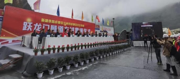 2021 年11 月28 日應(yīng)中鐵十九局集團(tuán)有限公司成蘭鐵路指揮部邀請,我公司代表出席了成蘭鐵路控制工程躍龍門隧道左線貫通慶祝儀式。成蘭鐵路是我國繼青藏鐵路之后又一條海拔在3000 米以上的高原鐵路,線路由成都平原向青藏高原攀升過程中,遇到的首要挑戰(zhàn)就是穿越龍門山地震斷裂帶。28 日這項(xiàng)“超級工程”迎來重大建設(shè)節(jié)點(diǎn),隨著最后 1 米圍巖被鑿?fù)ǎ瑲v經(jīng)9 年建設(shè)的成蘭鐵路躍龍門隧道左線順利貫通。