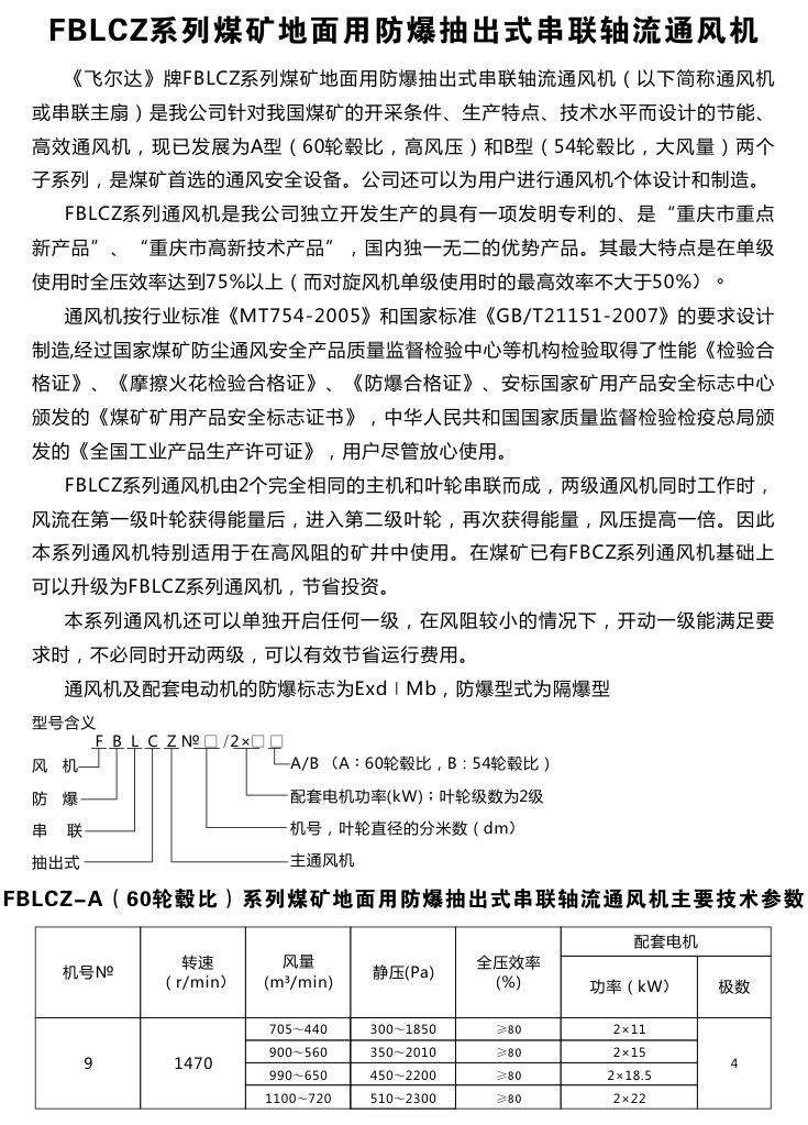 FBLCZ系列礦用地面防爆抽出式串聯軸流通風機